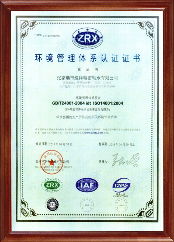 環(huán)境管理體系認(rèn)證證書
